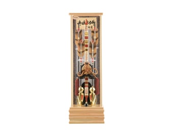 コンパクトに飾れる壁掛けタイプの破魔弓です。弓矢の背景には職人の技巧が光る組子細工が施されておりナチュラルな暖かみのある白木のケースと相まって伝統とモダンが見事に融合した破魔弓となっています。
