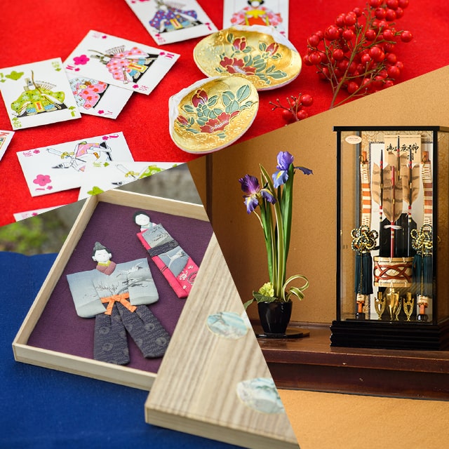 A 羽子板も破魔弓も、ともに古来からの行事であった新春の年占いや厄払いがその始まりです。男の子が弓矢で的を射て年占いをしたのがのちに破魔弓になり、女の子がお正月に羽をついて、その年の厄払いをしたのがのちに美しい羽子板を生み出したのです。