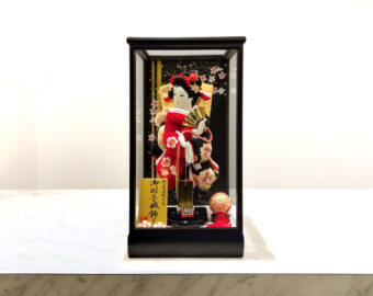 鮮やかで縁起の良い紅白の衣装が初正月のお祝いにぴったりな羽子板です。衣裳は、正絹の鹿の子絞りに可愛らしい桜の刺繍が施されており、品格と可愛らしさを兼ね備えています。ナチュラルな白木のケースが鮮やかな羽子板より際立たせます。