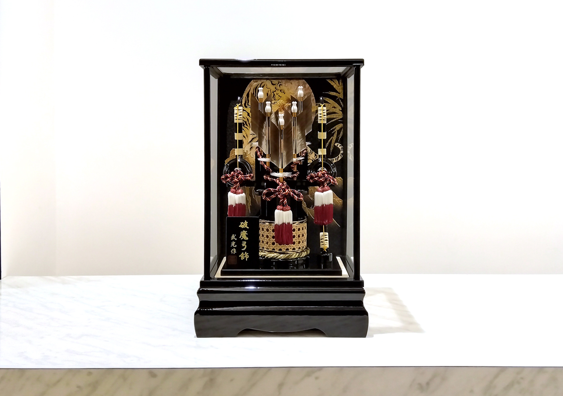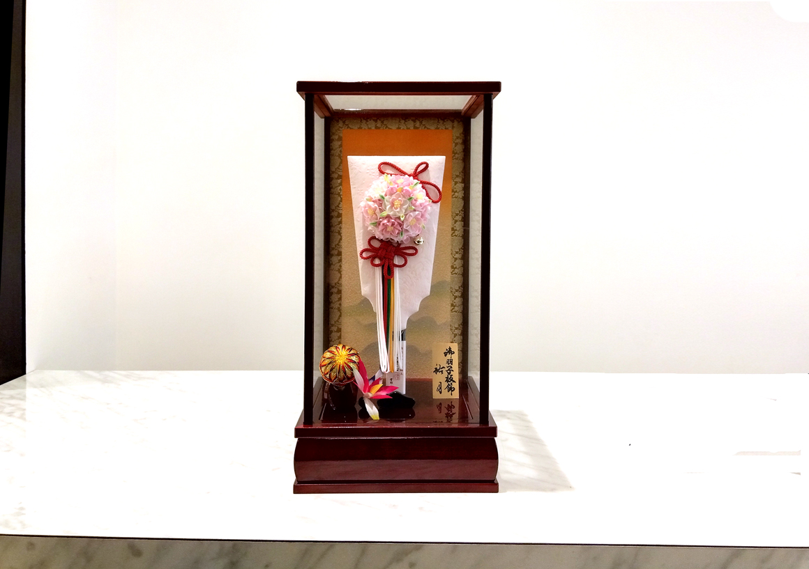 コンパクトな羽子板ですが、特徴的な長い振袖の御衣裳は正絹の絞り染めを使用、サーモン色とページュの優しい色合いの羽子板は四方アクリルを使用したケースが映える飾りでリビング等の洋間に合う初正月の御祝いだけでなく、そのまま飾っておきたくなる羽子板です。