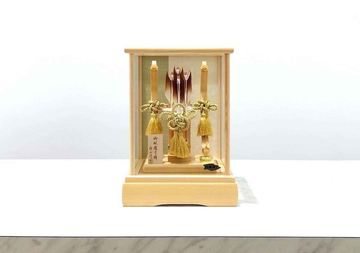 純白の衣装に桜とすみれの刺繍が施され、手にはつまみ細工のお花を持った可愛らしい羽子板です。落ち着いた淡いピンクのケースが羽子板をより際立てます。