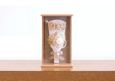 つまみ細工のお花が咲き誇る可愛らしくも華やかな羽子板です。薄型のアクリルケースを採用、壁掛けタイプとなっており、場所を選ばずお飾り頂けます。また、つまみ細工のお花は着脱し、かんざしにもでき初正月の後も七五三やお子様の行事の際お召しいただけます。