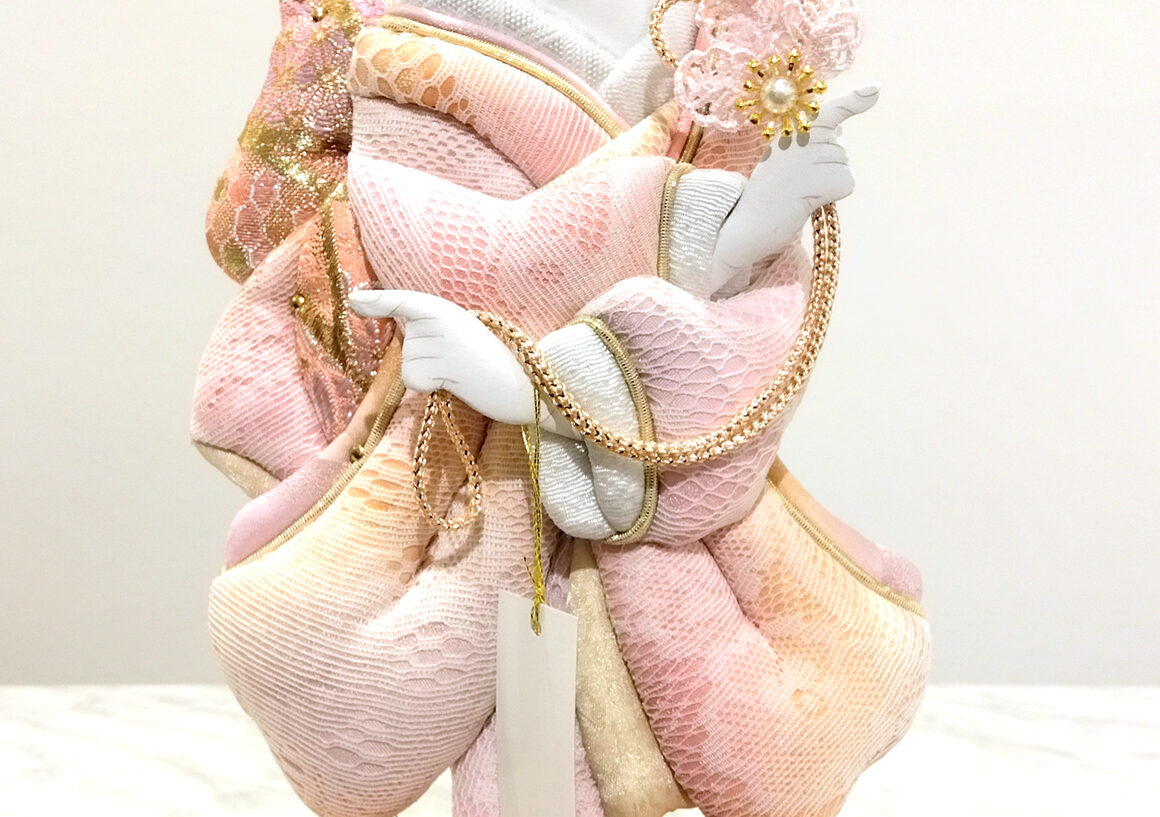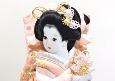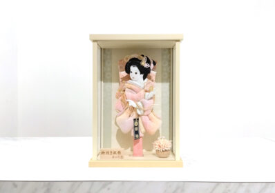 淡く可愛らしいピンクのお衣装にはレース生地が張り付けられた上品で繊細な美しさを放つ羽子板です。白いケースに合わせ、羽子板の美しさをより際立たせています。壁掛けタイプになっており、壁に掛けたり置いて飾ったりと様々な場所にお飾りいただけます。