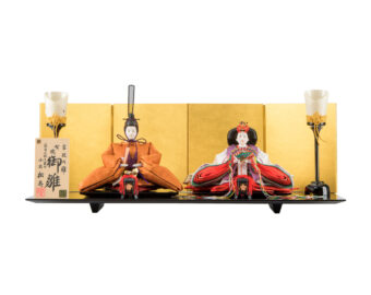 パステル調の可愛らしいお雛様に中央のキューブ型のオブジェがモダンな白塗りの飾り台を合わせました。サイズもコンパクトで是非リビングにお飾りいただきたいお雛様です。