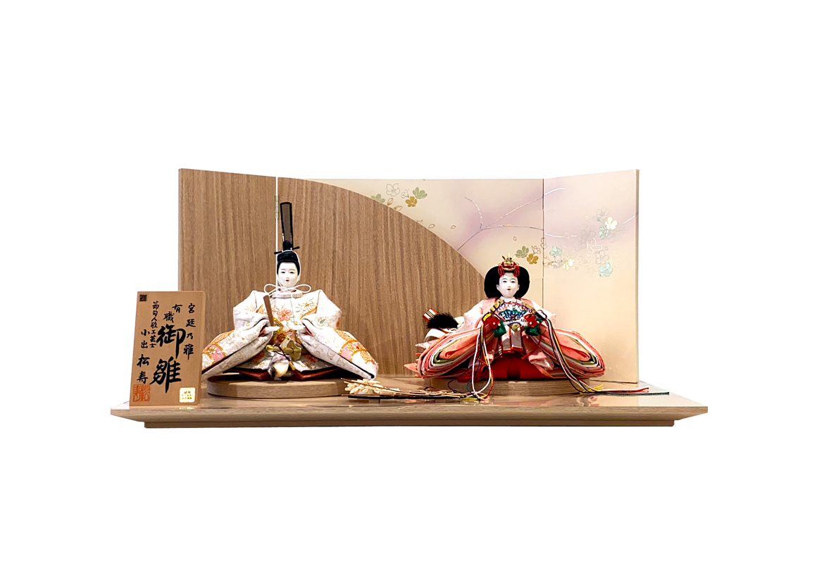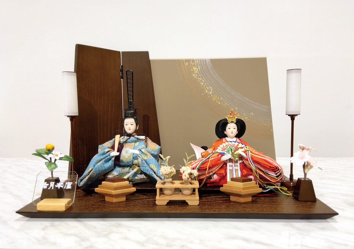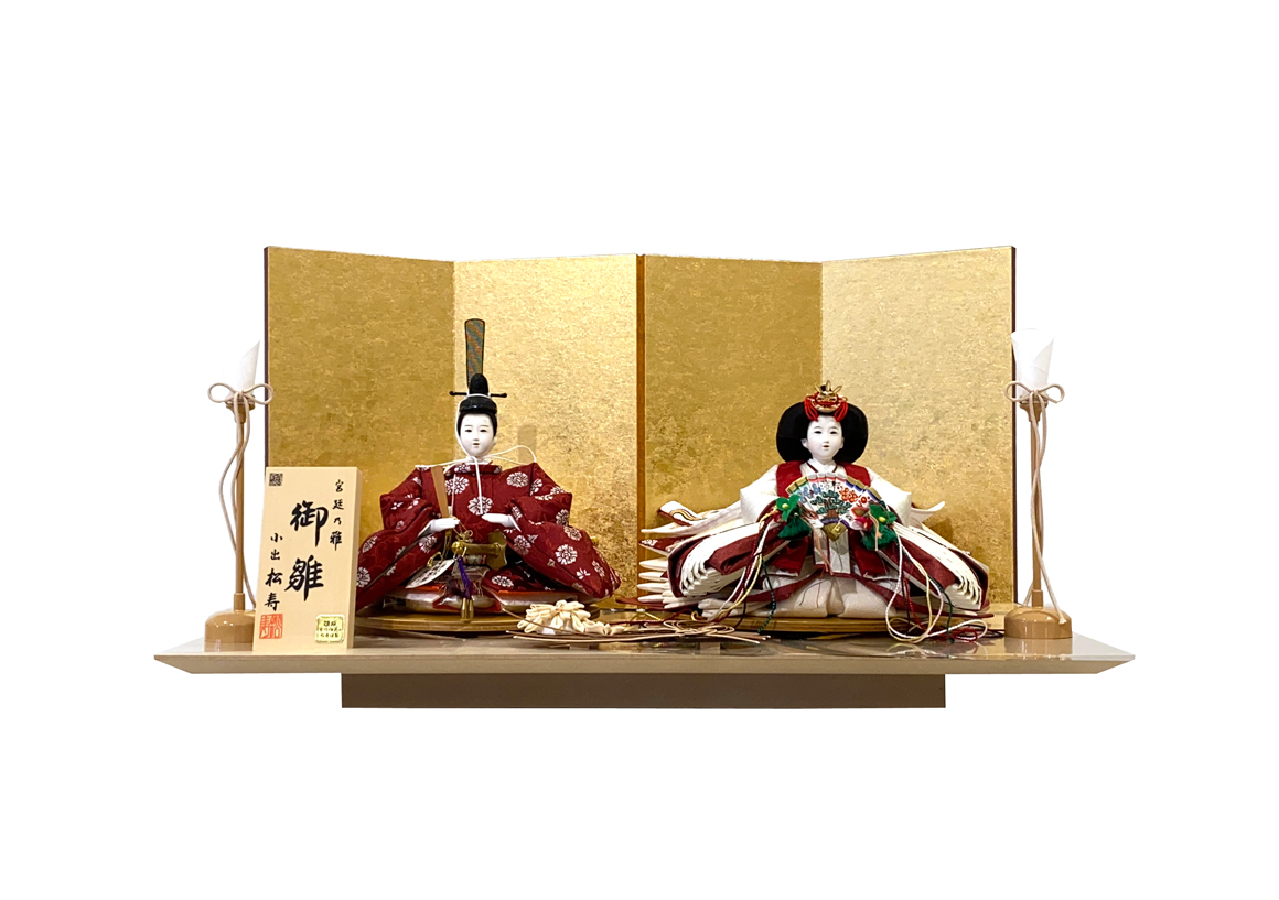 日本の伝統的な華やかさと、現代の洗練されたデザインが見事に融合したお雛様です。特徴的なスタイリッシュな飾り台は、重厚感のある木製でありながらも繊細な装飾が施されており、お部屋に高級感を演出してくれること間違いなしです。
