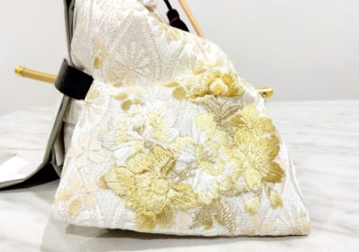 白と金を基調としたお雛様です。金色の牡丹と桜の刺繍が施された衣装は、華やかさと上品さがありお雛様を彩ります。さらに、洋間にも調和するナチュラルな白木調の飾り台がお人形を引き立て、洗練されたデザインが特徴的な飾りとなっています。