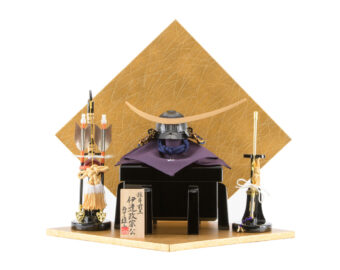 戦国の名将、伊達政宗の甲冑をモチーフにしたお子様が着用できる兜です。5歳児サイズになっており、初節句は飾ってお祝いし、七五三の時など今後はかぶってお祝いする等、初節句の後も楽しみが増える兜飾りです。