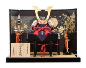 格好の良い黒と金を基調とした兜とそれを際立たせるシックな黒一色の屏風にはキューブ型のオブジェが取り付けられスタイリッシュなデザインで和洋お部屋を問わずお飾り頂けます。