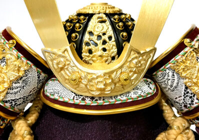 黒と金を基調としたスマートなデザインが兜の美しさを引き立てます。コンパクトに出し入れが可能な収納飾りになっており、和洋お部屋を問わずお飾りいただけます。