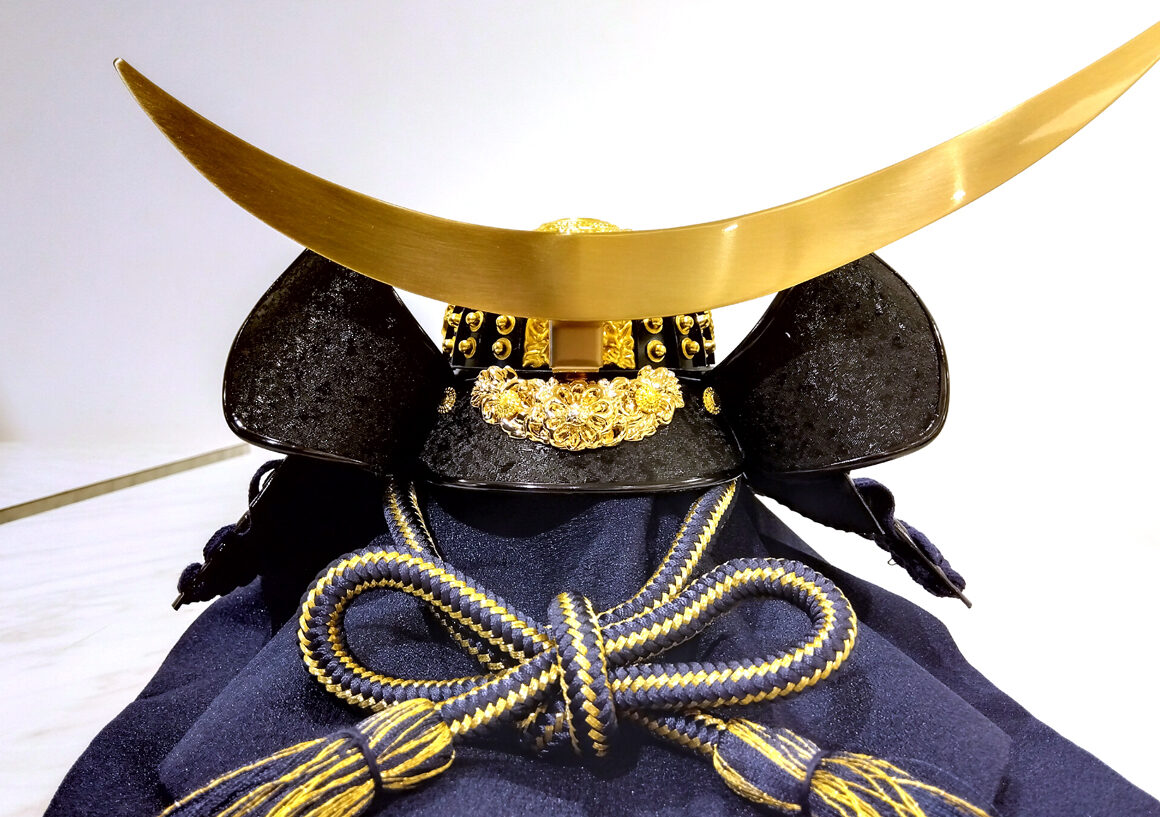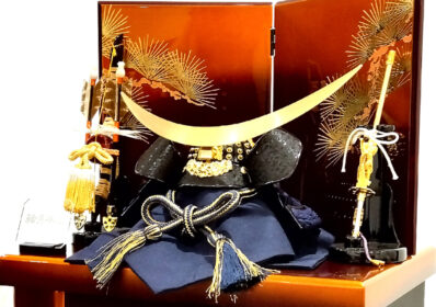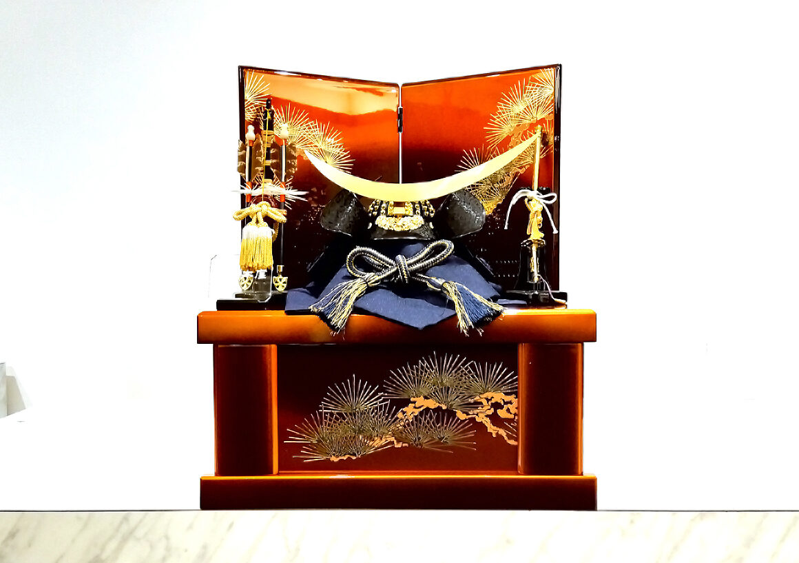 戦国の猛将である伊達政宗をモチーフにした兜飾りです。その重厚感ある兜には、特徴的な三日月の前立てが施されており、存在感ある飾りとなっています。また、色鮮やかな赤塗の収納台と組み合わせることで、見た目にも華やかさをプラスしています。コンパクトに飾れ出し入れ簡単な収納飾りとなっており飾る場所を選ばない兜飾りです。
